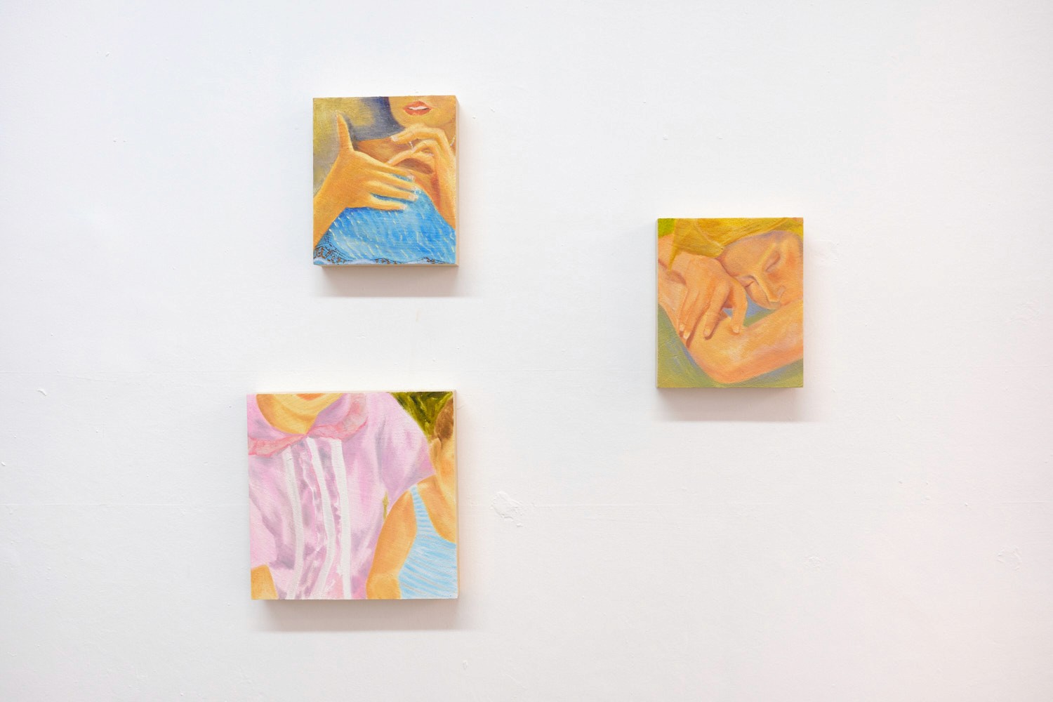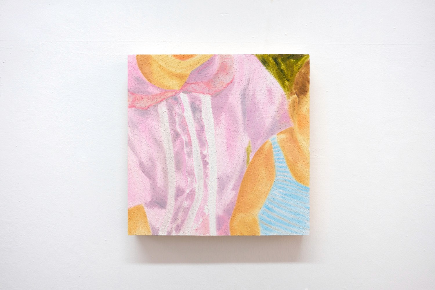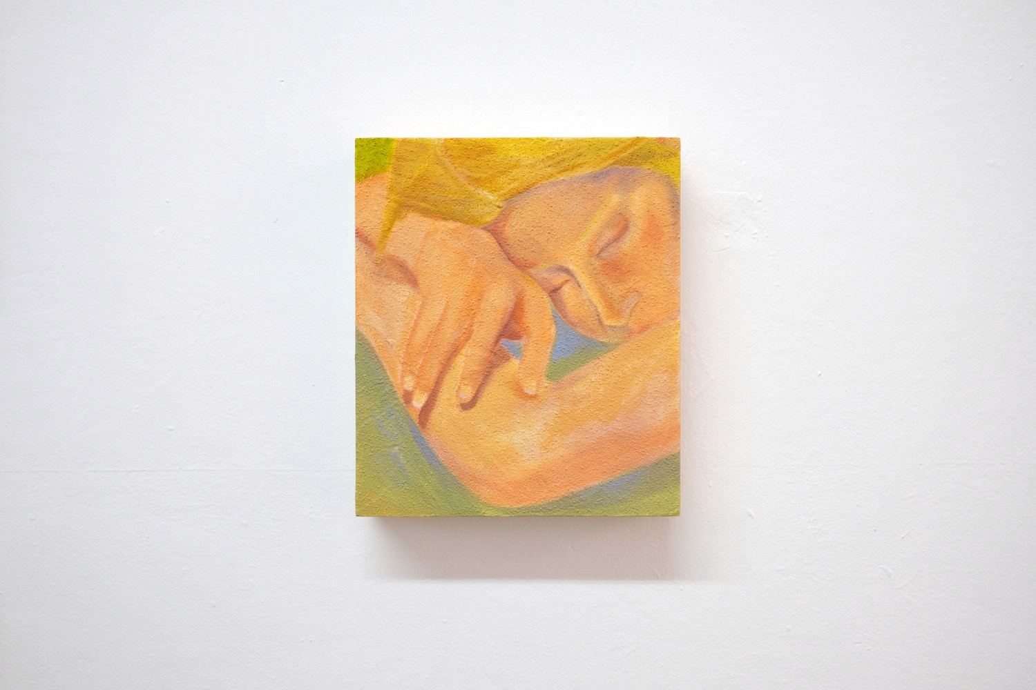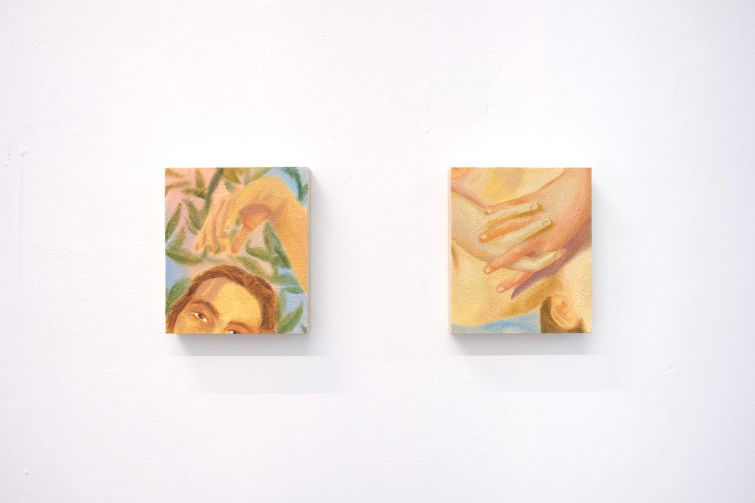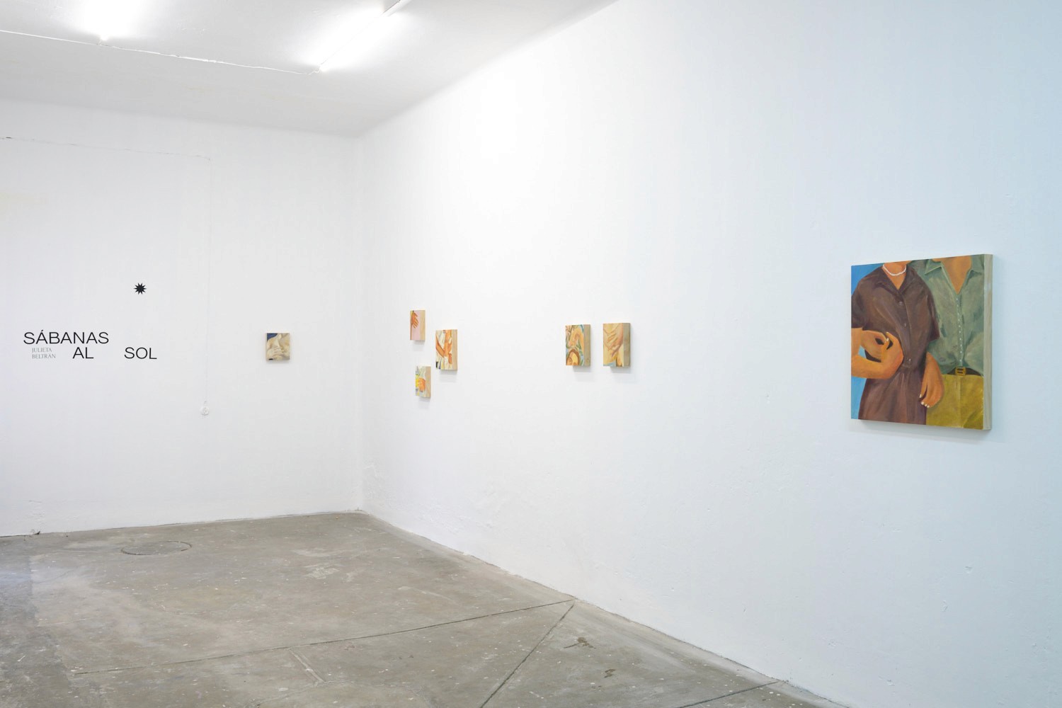 El trabajo artístico de Julieta Beltrán Lazo (Ciudad de México, 1997) explora a través de la construcción de archivos personales una cartografía de afectos, traduciéndolos en vocabularios pictóricos. Los archivos integran imágenes de su contexto inmediato como fotografías de su historia familiar para especular sobre su propia biografía, vinculada fuertemente con una genealogía matriarcal; fotografías que ella misma toma de su cotidiano; archivos de otros con los que ella entra en contacto, e imágenes de la cultura contemporánea que, de múltiples maneras, atraviesan la sensibilidad colectiva. Su archivo no responde a una catalogación exhaustiva o una sistematización rígida, este es más bien un tejido abierto que tiene como punto de arranque la intuición. A través de acercamientos, primeros planos y planos detalle, Beltrán se enfoca en el potencial del recorte de las imágenes, abstrayendo una fracción mínima, que en un acto de deseo y tacto, vuelve pintura. Sábanas al sol, primera exposición individual de la artista, propone una constelación personal, subjetiva y libre para imaginar nuevas relaciones entre cada obra, produciendo destellos en la imaginación. Su pintura retorna a la poética del gesto, del guiño, de la proximidad tímida, cautelosa, de lo vital, del momento atesorado en la memoria que regresa a nosotros iluminado por una luz cálida. La mirada nos es llevada entre pinturas que a pesar de su aparente distancia, se tocan, se funden y se mezclan. Sábanas al sol refiere a una imagen latente en su trabajo procesual, velada en esta exposición a través de la paleta de colores. El recuerdo de su abuela tendiendo en el jardín las sábanas en días soleados, es una imagen que impulsa la producción de la artista. Este momento particular fue un sitio de anhelo para ella durante su estadía fuera del país en sus años de formación universitaria, pero también un espacio de tregua para las exigencias de un sistema de producción artística que le pide hacer de su arte, una cuestión política. La pintura es ante todo cuerpo, tacto, presencia.