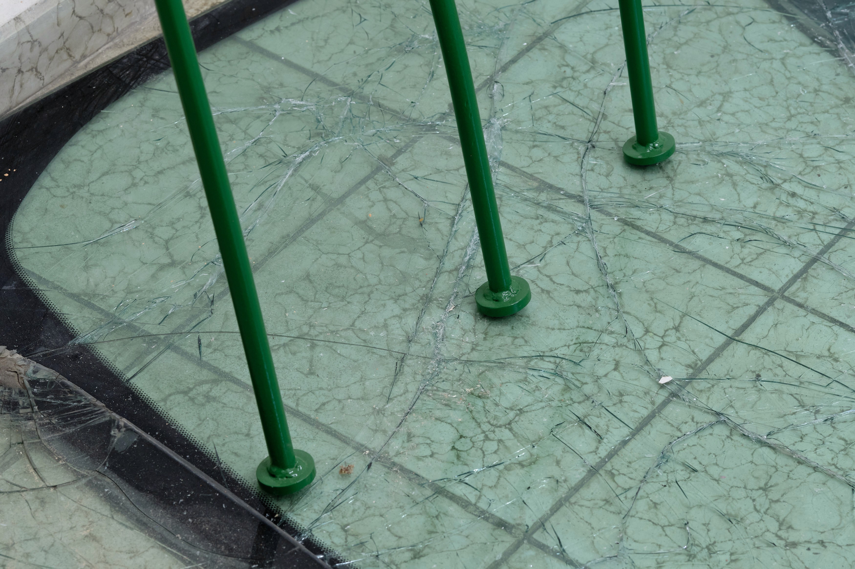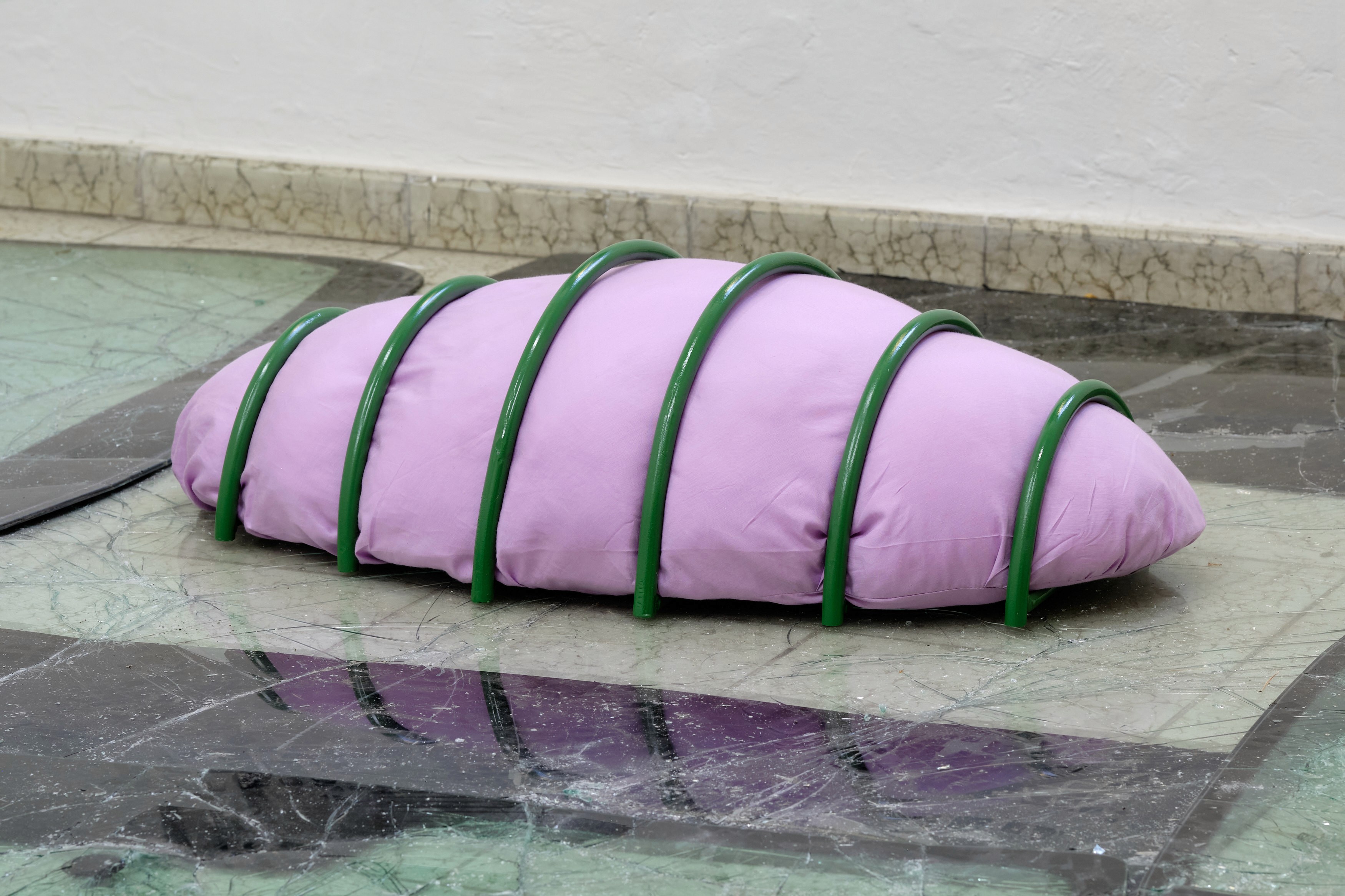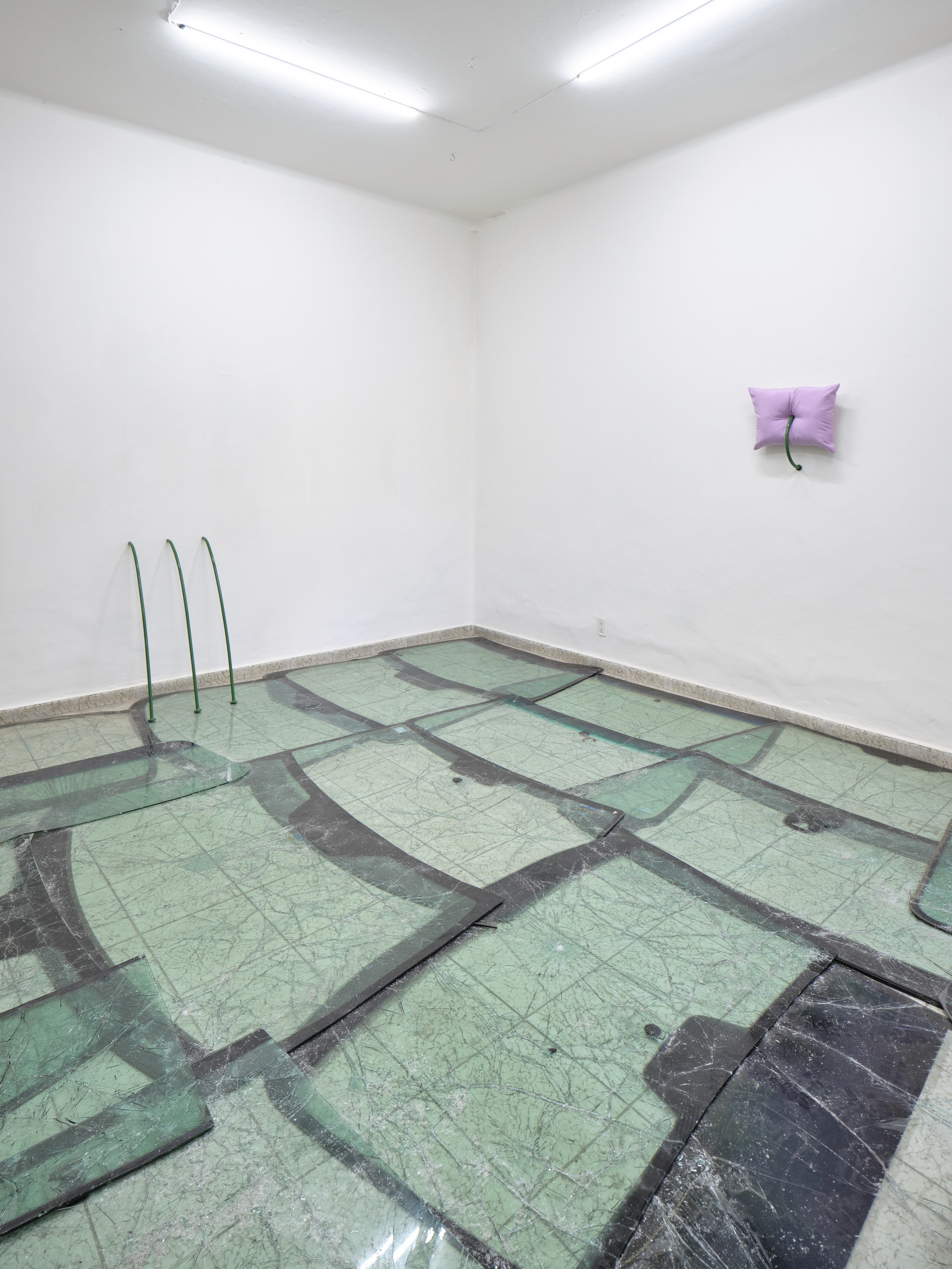 Gabriela KobusGabriela Kobus explora el hogar como una estructura ambivalente, donde la seguridad es una promesa frágil y la estabilidad nunca es absoluta. En su instalación, el suelo, que debería sostenernos, cruje bajo los pies. Es vidrio laminado, un material industrial que conocemos por su capacidad de resistencia, pero aquí aparece resquebrajado, impotente, despojado de su propósito. ¿Qué ocurre cuando lo que nos sostiene se vuelve inestable? ¿Qué pasa cuando lo familiar se torna incierto? A lo largo de la sala, los objetos sugieren comodidad, pero la niegan al tacto. Varillas de metal curvadas parecen diseñadas para abrazar el cuerpo, pero su rigidez las vuelve inhóspitas. Cojines mullidos evocan descanso, pero su disposición impide cualquier gesto de apoyo. De estos objetos pulidos y fríos emana una advertencia sutil pero latente: no te relajes, no te acomodes, aquí no hay refugio. Nos refugiamos en hogares diseñados para nuestro confort, donde cada objeto, cada textura, cada detalle parece confirmar una ilusión de control. La suavidad de una manta, la curvatura exacta de un sofá, la pulcritud del vidrio que separa el adentro del afuera. Tengo buen gusto. Embellezco mi vida. Mi hogar es mi castillo. Pero, cuando el espacio doméstico se desmorona y la ciudad se cierra sobre sí misma, ¿a dónde vamos? ¿Qué sucede cuando la protección se convierte en exclusión? El automóvil surge como una extensión del hogar, un caparazón en movimiento, una cápsula de control que avanza a través del caos urbano. El coche no es solo un medio de transporte; es un territorio privado dentro de lo público, un refugio portátil contra la intemperie de la ciudad. Pero, ¿qué tan segura es esta burbuja? Fragmentos de ventanas rotas de automóviles se acumulan, como si fueran restos de una arquitectura en colapso. Como ocurre con los objetos domésticos de vidrio, estas superficies exponen la paradoja entre protección y fragilidad. Un parabrisas promete seguridad, pero es lo primero en estallar ante un impacto. Un ventanal nos separa del exterior, pero en su transparencia se oculta la posibilidad de la ruptura. La instalación establece un diálogo con la arquitectura defensiva, un diseño urbano que, bajo la apariencia de funcionalidad, impone límites invisibles. Bancas incómodas, superficies inclinadas, estructuras que parecen ofrecer descanso, pero que en realidad disuaden la permanencia. Estas estrategias no están pensadas para el confort, sino para la exclusión. ¿Quién tiene derecho a habitar el espacio público? ¿Quién es empujado fuera de él? Entre autos y arquitecturas, Kobus indaga en la tensión entre movilidad y arraigo, entre tránsito y permanencia. Si la casa ya no es un lugar estable y la ciudad se vuelve inhóspita, el automóvil se convierte en un hogar intermitente, un refugio precario. Pero, al igual que el vidrio que lo compone, su promesa de protección es tan sólida como quebradiza. Si el último refugio se rompe, ¿qué queda?promesa frágil y la estabilidad nunca es absoluta. En su instalación, el suelo, que debería sostenernos, cruje bajo los pies. Es vidrio laminado, un material industrial que conocemos por su capacidad de resistencia, pero aquí aparece resquebrajado, impotente, despojado de su propósito. ¿Qué ocurre cuando lo que nos sostiene se vuelve inestable? ¿Qué pasa cuando lo familiar se torna incierto? A lo largo de la sala, los objetos sugieren comodidad, pero la niegan al tacto. Varillas de metal curvadas parecen diseñadas para abrazar el cuerpo, pero su rigidez las vuelve inhóspitas. Cojines mullidos evocan descanso, pero su disposición impide cualquier gesto de apoyo. De estos objetos pulidos y fríos emana una advertencia sutil pero latente: no te relajes, no te acomodes, aquí no hay refugio. Nos refugiamos en hogares diseñados para nuestro confort, donde cada objeto, cada textura, cada detalle parece confirmar una ilusión de control. La suavidad de una manta, la curvatura exacta de un sofá, la pulcritud del vidrio que separa el adentro del afuera. Tengo buen gusto. Embellezco mi vida. Mi hogar es mi castillo. Pero, cuando el espacio doméstico se desmorona y la ciudad se cierra sobre sí misma, ¿a dónde vamos? ¿Qué sucede cuando la protección se convierte en exclusión? El automóvil surge como una extensión del hogar, un caparazón en movimiento, una cápsula de control que avanza a través del caos urbano. El coche no es solo un medio de transporte; es un territorio privado dentro de lo público, un refugio portátil contra la intemperie de la ciudad. Pero, ¿qué tan segura es esta burbuja? Fragmentos de ventanas rotas de automóviles se acumulan, como si fueran restos de una arquitectura en colapso. Como ocurre con los objetos domésticos de vidrio, estas superficies exponen la paradoja entre protección y fragilidad. Un parabrisas promete seguridad, pero es lo primero en estallar ante un impacto. Un ventanal nos separa del exterior, pero en su transparencia se oculta la posibilidad de la ruptura. La instalación establece un diálogo con la arquitectura defensiva, un diseño urbano que, bajo la apariencia de funcionalidad, impone límites invisibles. Bancas incómodas, superficies inclinadas, estructuras que parecen ofrecer descanso, pero que en realidad disuaden la permanencia. Estas estrategias no están pensadas para el confort, sino para la exclusión. ¿Quién tiene derecho a habitar el espacio público? ¿Quién es empujado fuera de él? Entre autos y arquitecturas, Kobus indaga en la tensión entre movilidad y arraigo, entre tránsito y permanencia. Si la casa ya no es un lugar estable y la ciudad se vuelve inhóspita, el automóvil se convierte en un hogar intermitente, un refugio precario. Pero, al igual que el vidrio que lo compone, su promesa de protección es tan sólida como quebradiza. Si el último refugio se rompe, ¿qué queda?
