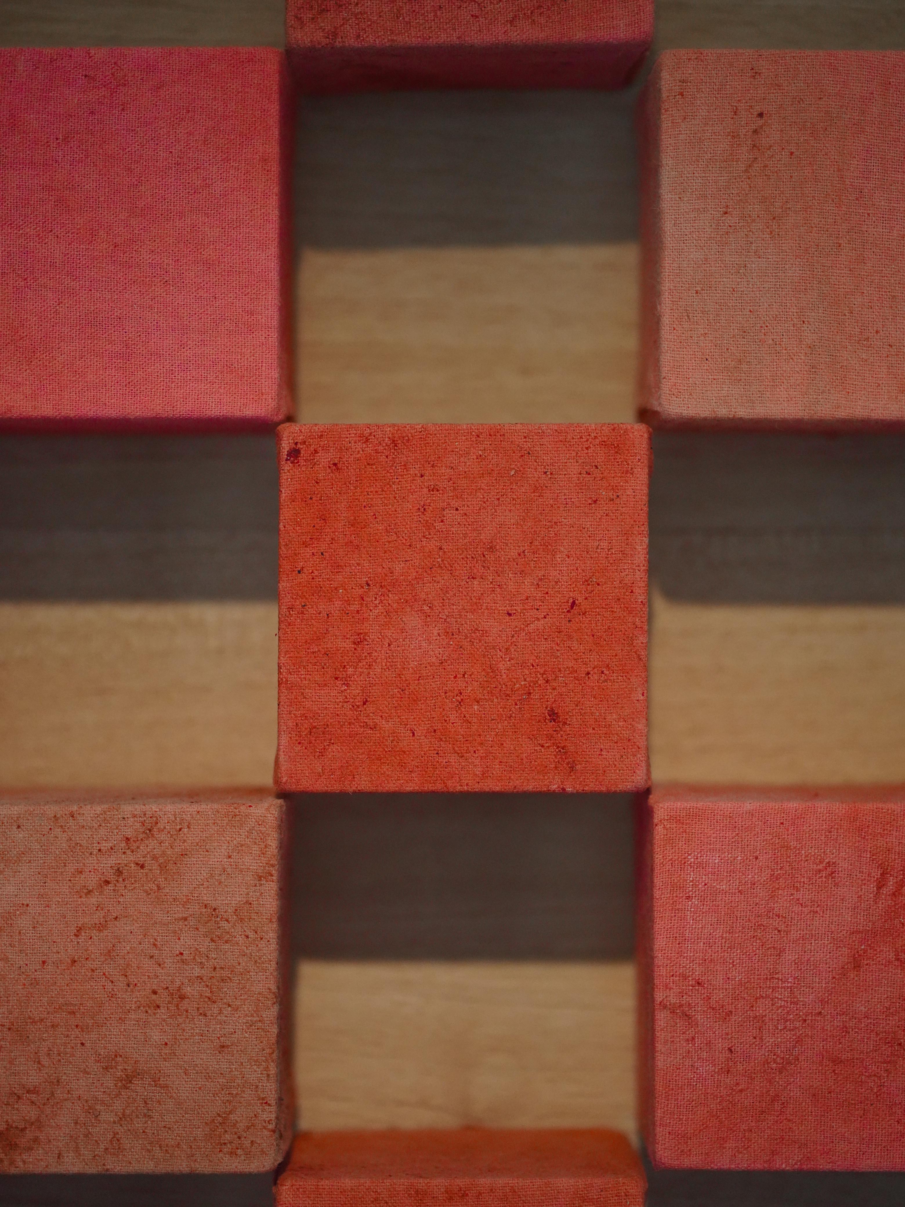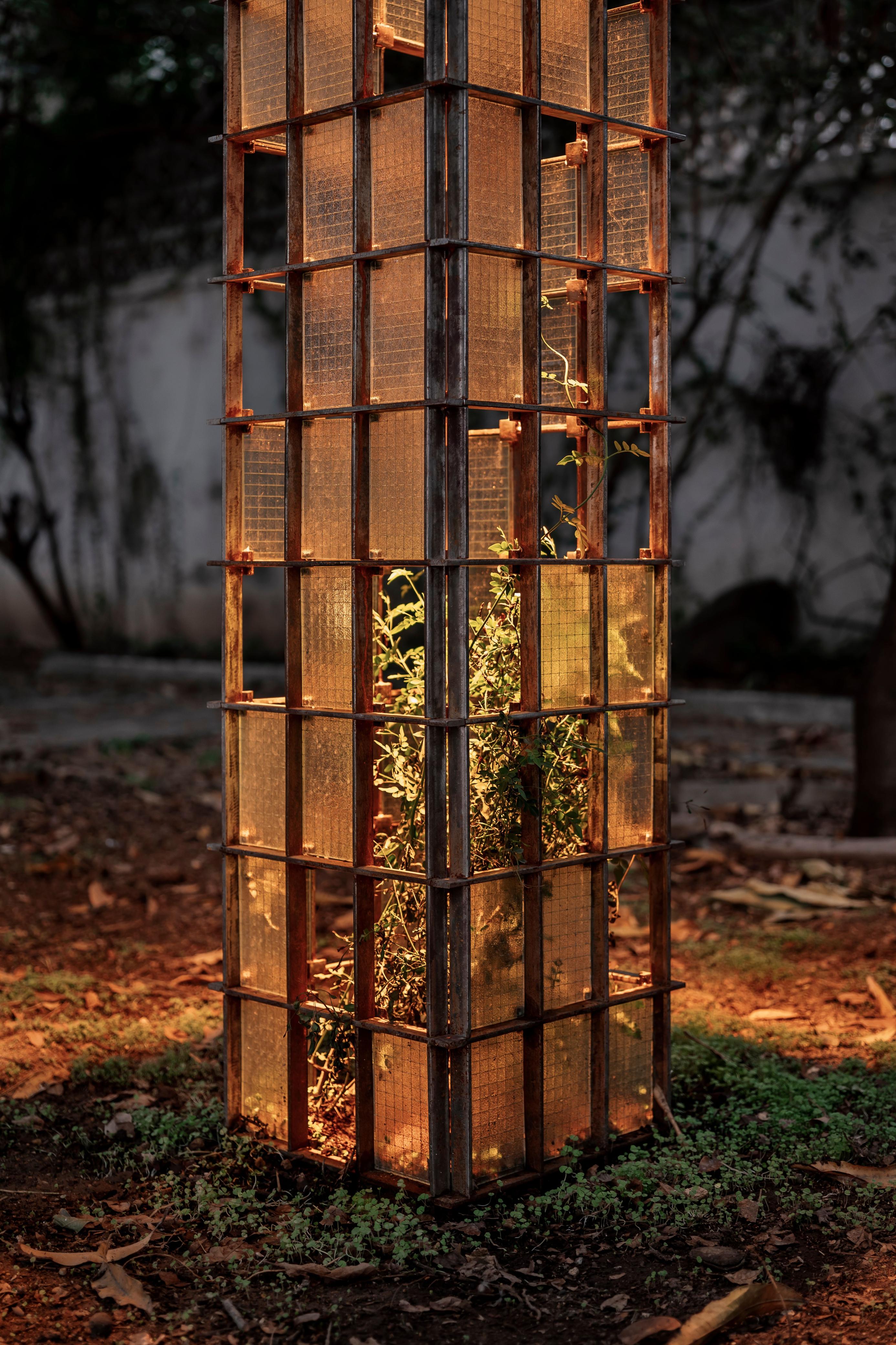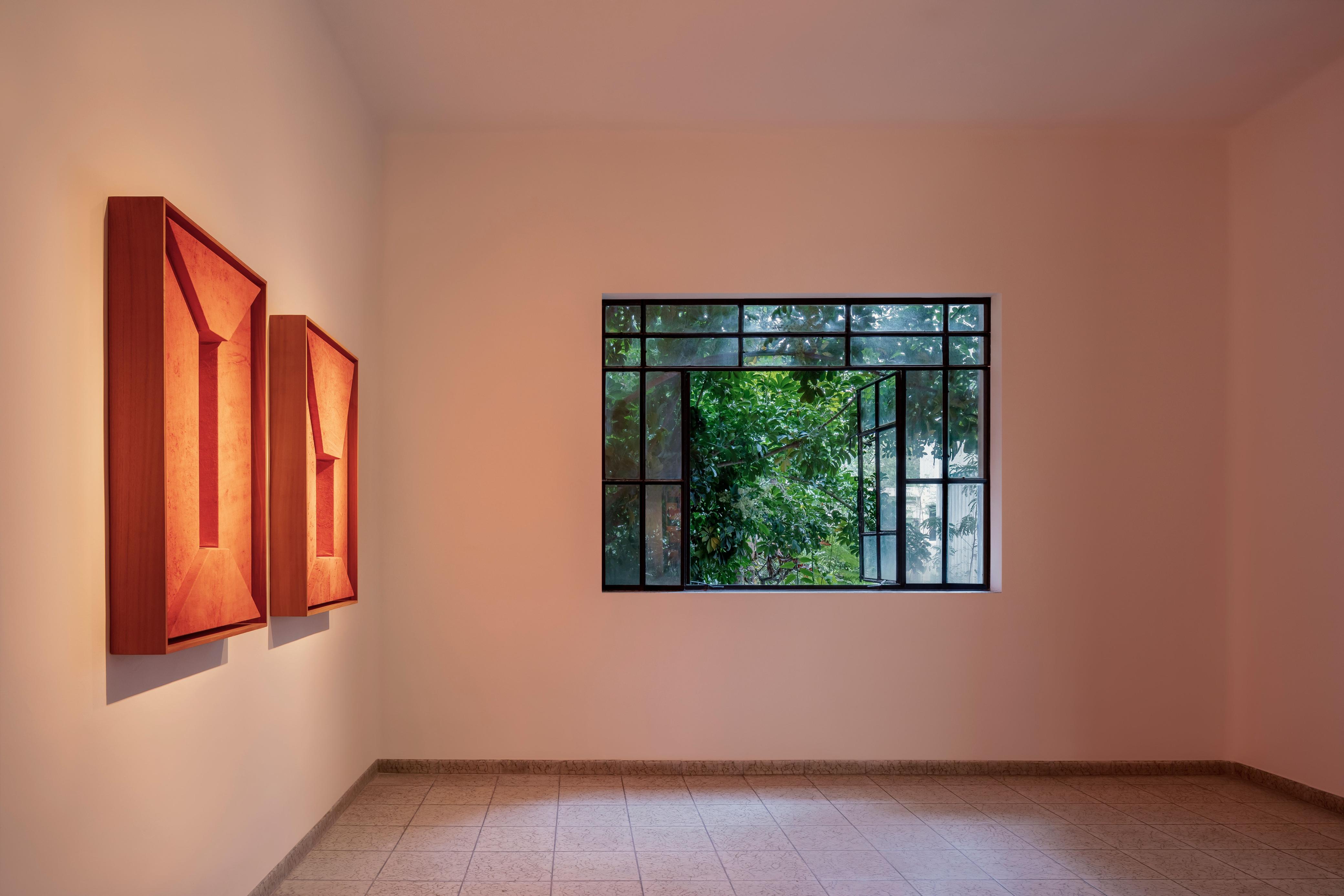 Achiote and the management of endemic species are the means by which artist Carlos A. Mora addresses the increasing deforestation and loss of the Mayan biocultural heritage. The times of dispossession are spreading violently on a global scale, sweeping away nature, peoples and cultures by leaps and bounds. In order to accumulate as much capital as possible through the extraction of material resources, the Yucatan Peninsula has undergone major changes to its tropical forests in recent decades. Hence, the exhibition Tierra baldía is the result of an investigation and a body of work based on the millenary Mayan culture and the ecological destruction that forges its territory. The artist reads and approaches the landscape of the Yucatan Peninsula from the field of architecture. The artist reads and approaches the landscape of the Yucatan Peninsula from the field of architecture. In his work, this translates into the use of architectural plants from Mayan ceremonial centres located in that land. Mora decides to raise these plants with flax dyed with the seeds of Bixa orellana known as achiote. In ancient times, achiote played a significant symbolic role in Mayan sacrifices and rituals. Hence the artist draws a bridge between the blood that flowed during these ancestral ceremonies and the current problem of arson. Similarly, the artist weaves in the advance of deforestation by making use of cedar, one of the many tree species affected by real estate speculation, tourism and agribusiness in the region. The exhibition extends outwards with the installation Device I: Jasminum grandiflorum, a greenhouse structure that protects the jasmine species. The artist proposes a dual function for the device: the windows are arranged following the translation of the plant's scientific name into binary code, in order to contain and reveal biological information about the plant in the future. But the work also poses a contradiction, in which the act of conserving nature is achieved by safeguarding it. Similar to the policies of protectionism and preservation of our ecologies. As a whole, Tierra baldía not only revives the discussions and contradictions brought about by the devastation and loss of living heritage, but also proposes ways of making dedicated to the land itself, its history, materials and tradition. It is a story about a territory between memory and ashes. – Rosela del Bosque